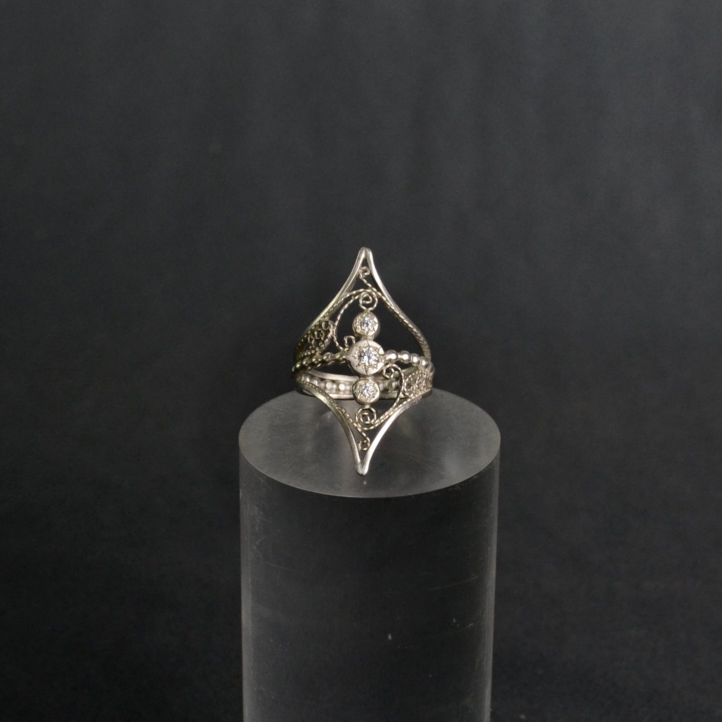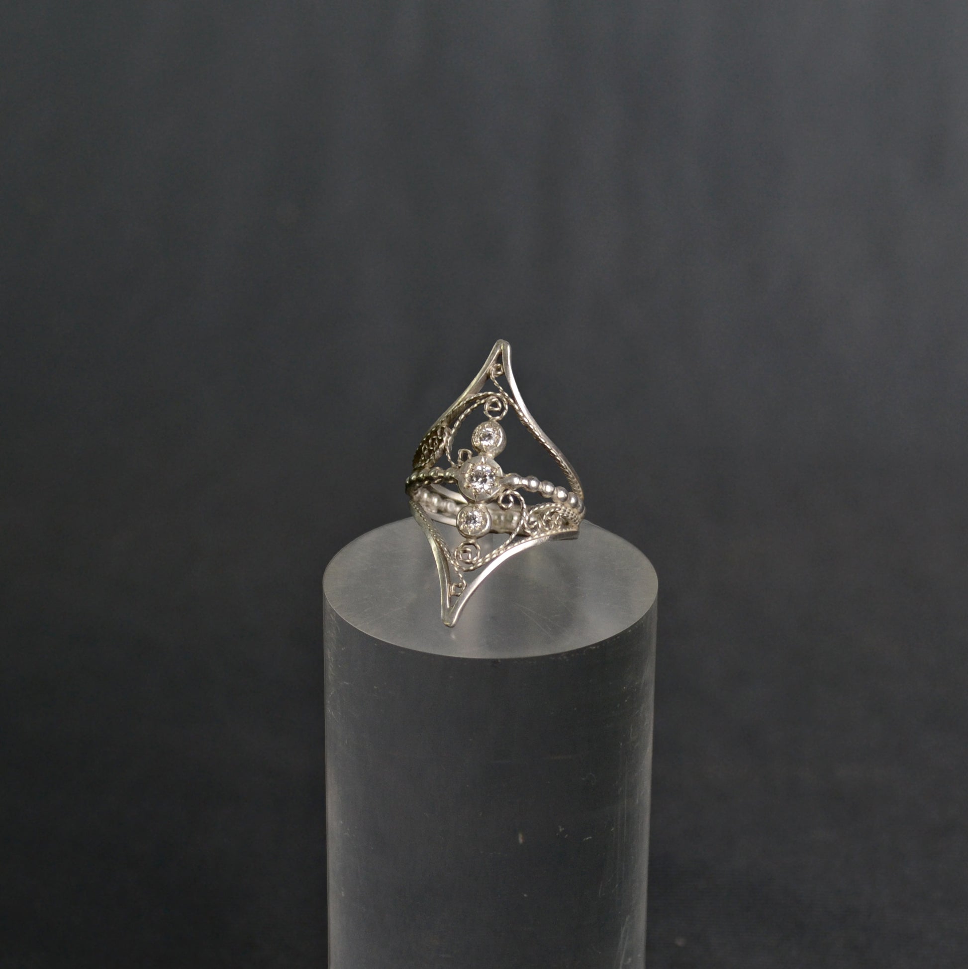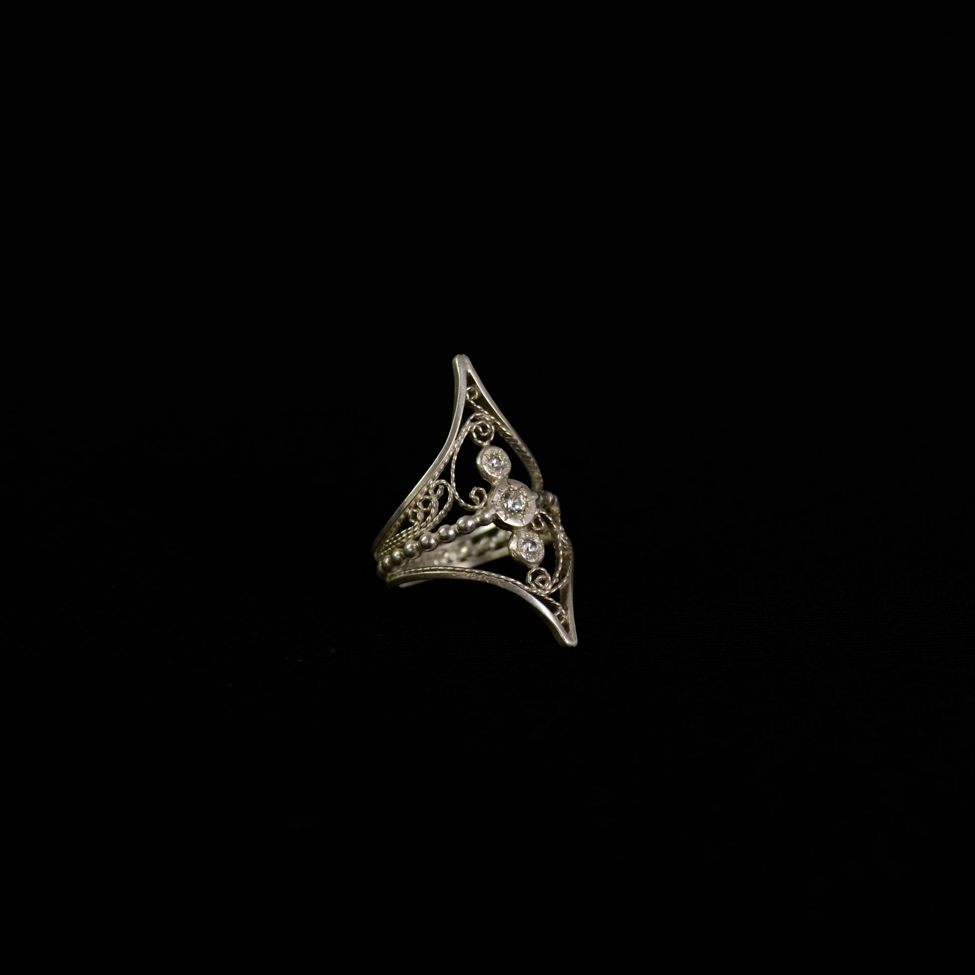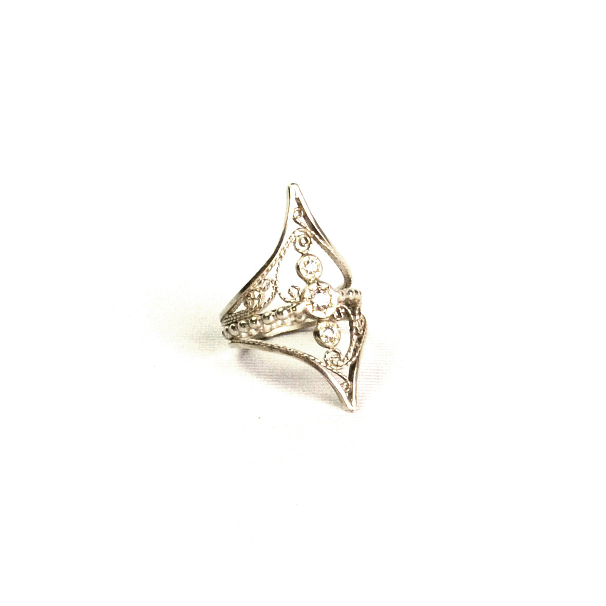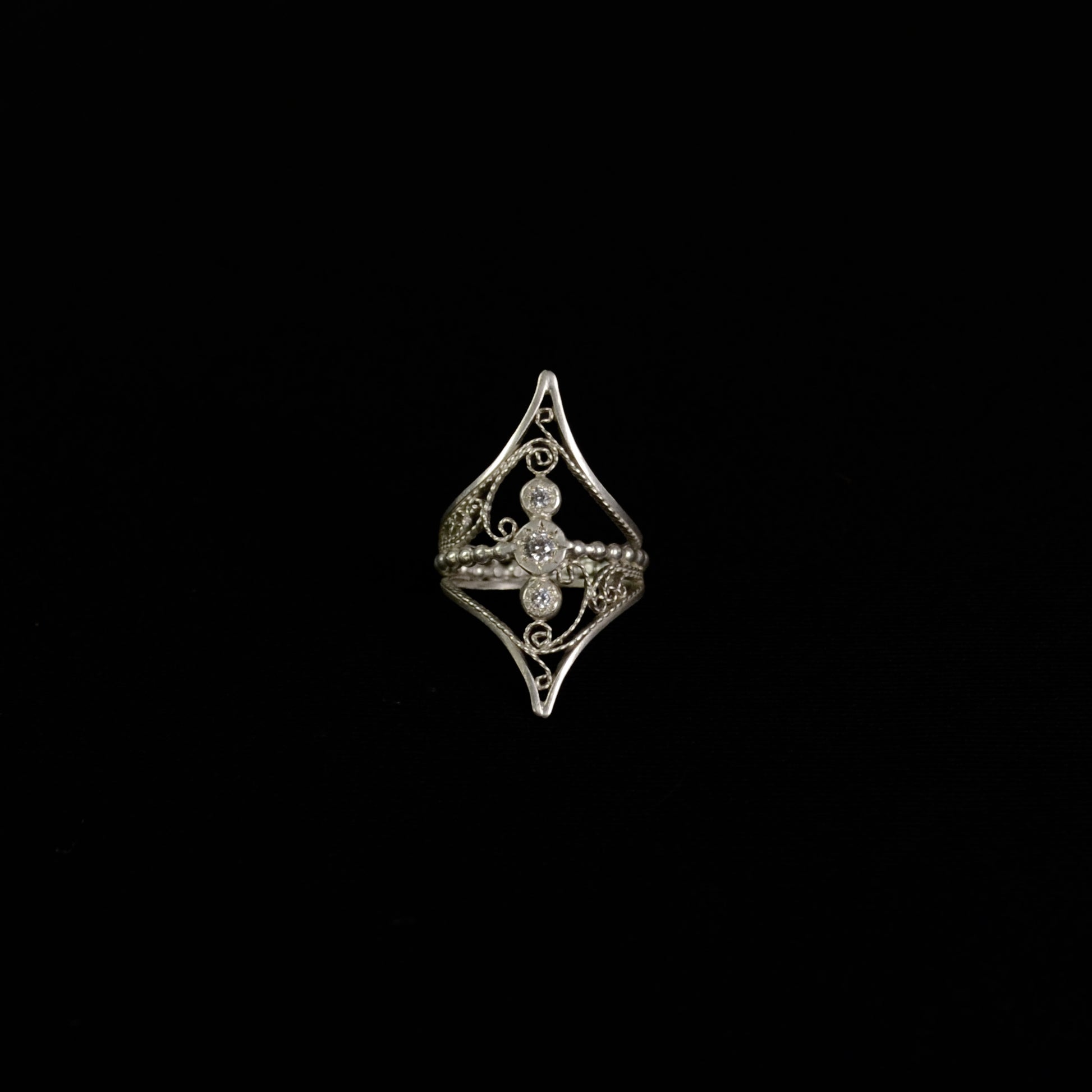 Crafted from sterling silver and adorned with a brilliant CZ diamonds, the Eve Ring exemplifies exquisite handmade artistry. Its elegant design offers a timeless statement piece that enhances any ensemble with subtle sophistication and enduring beauty.