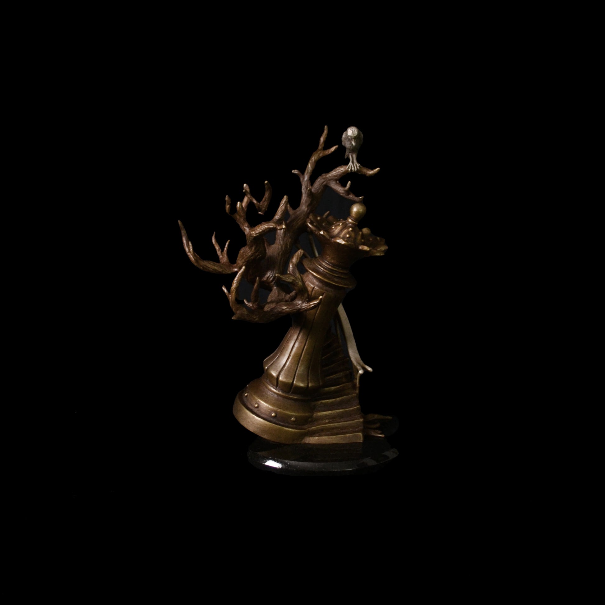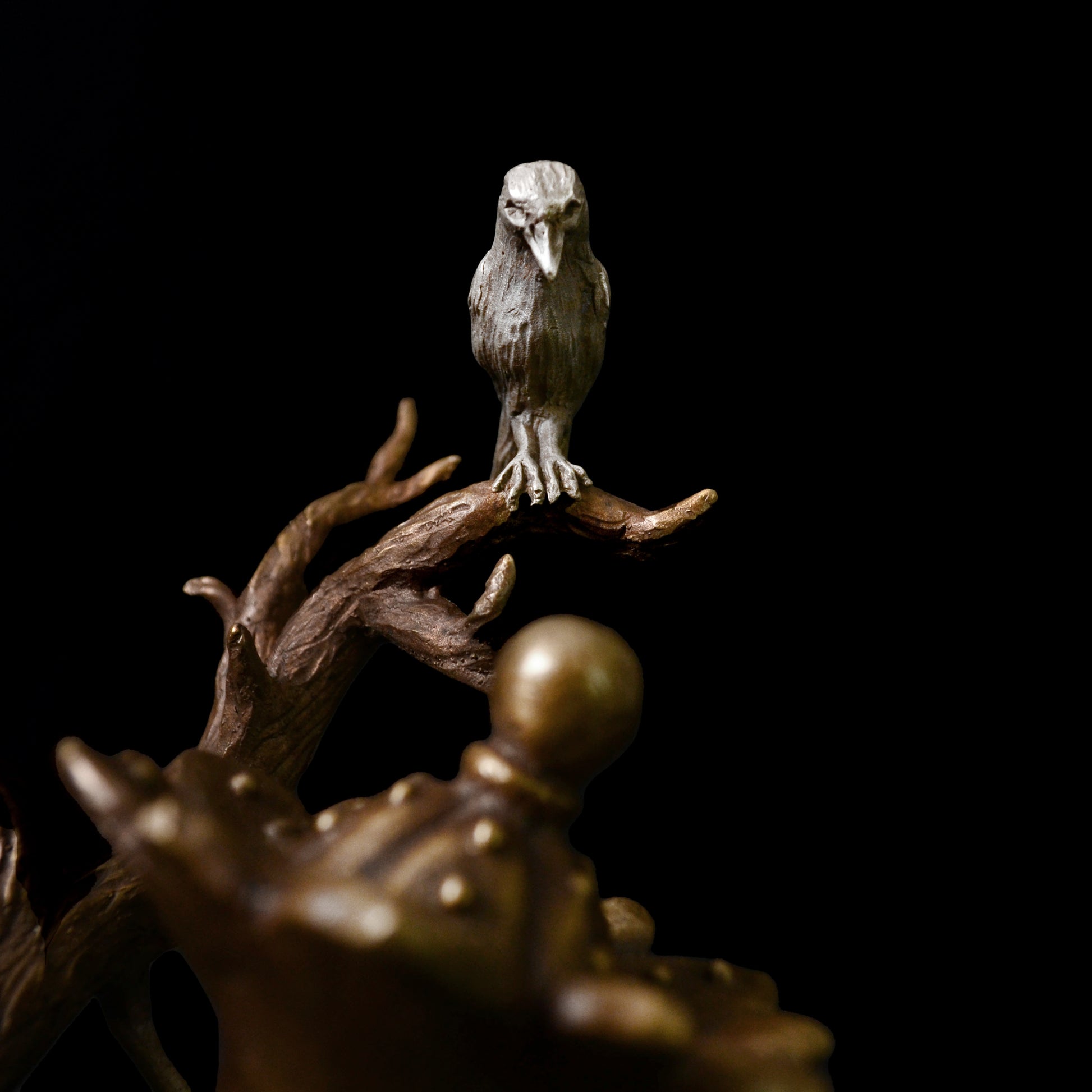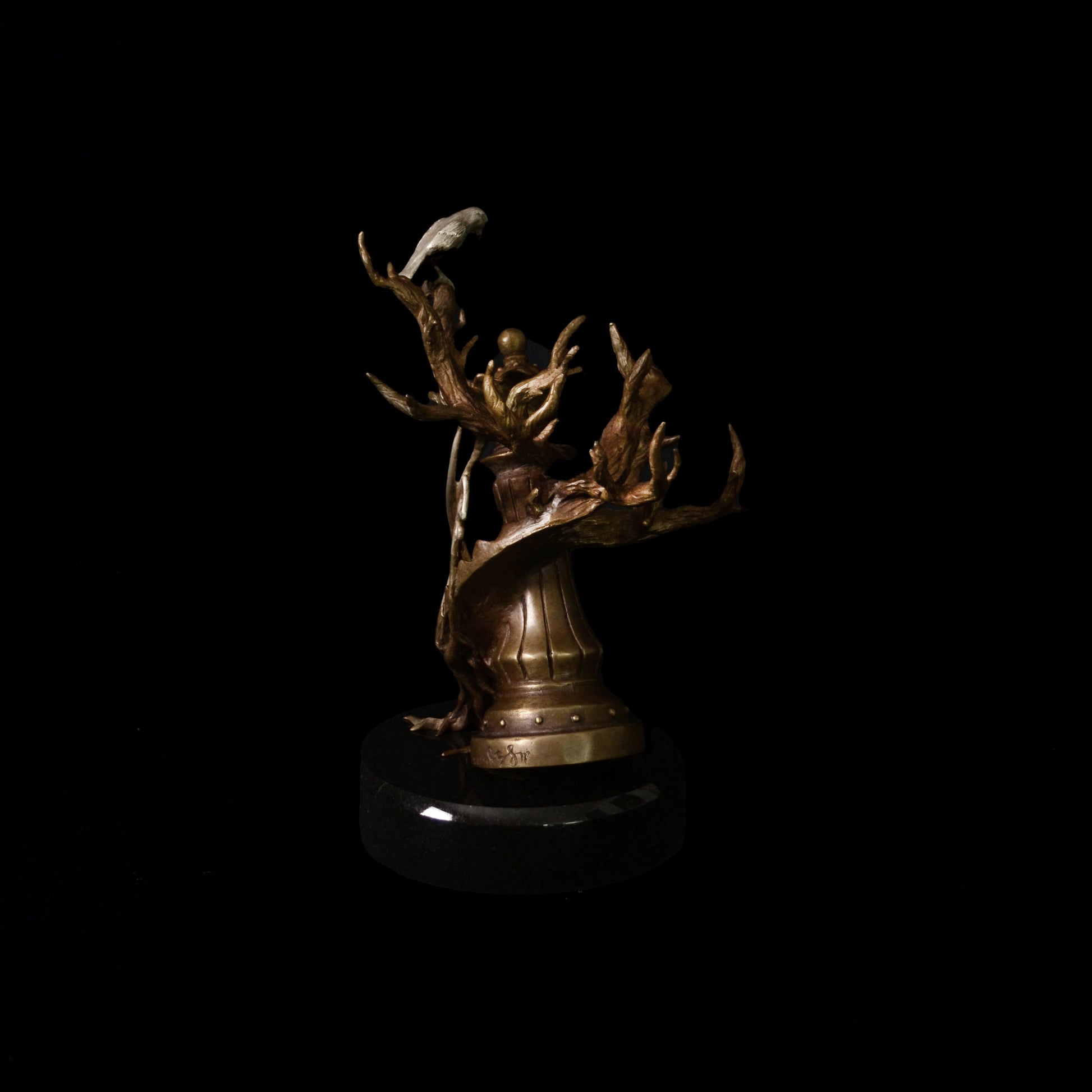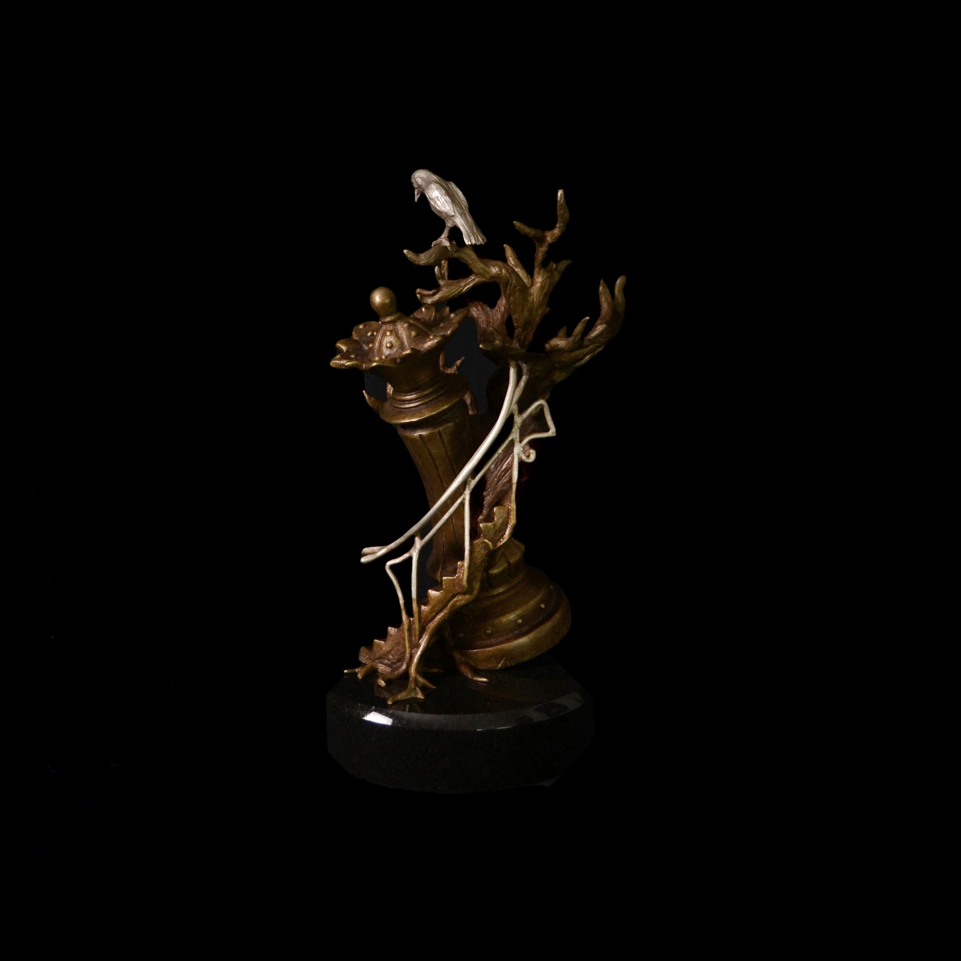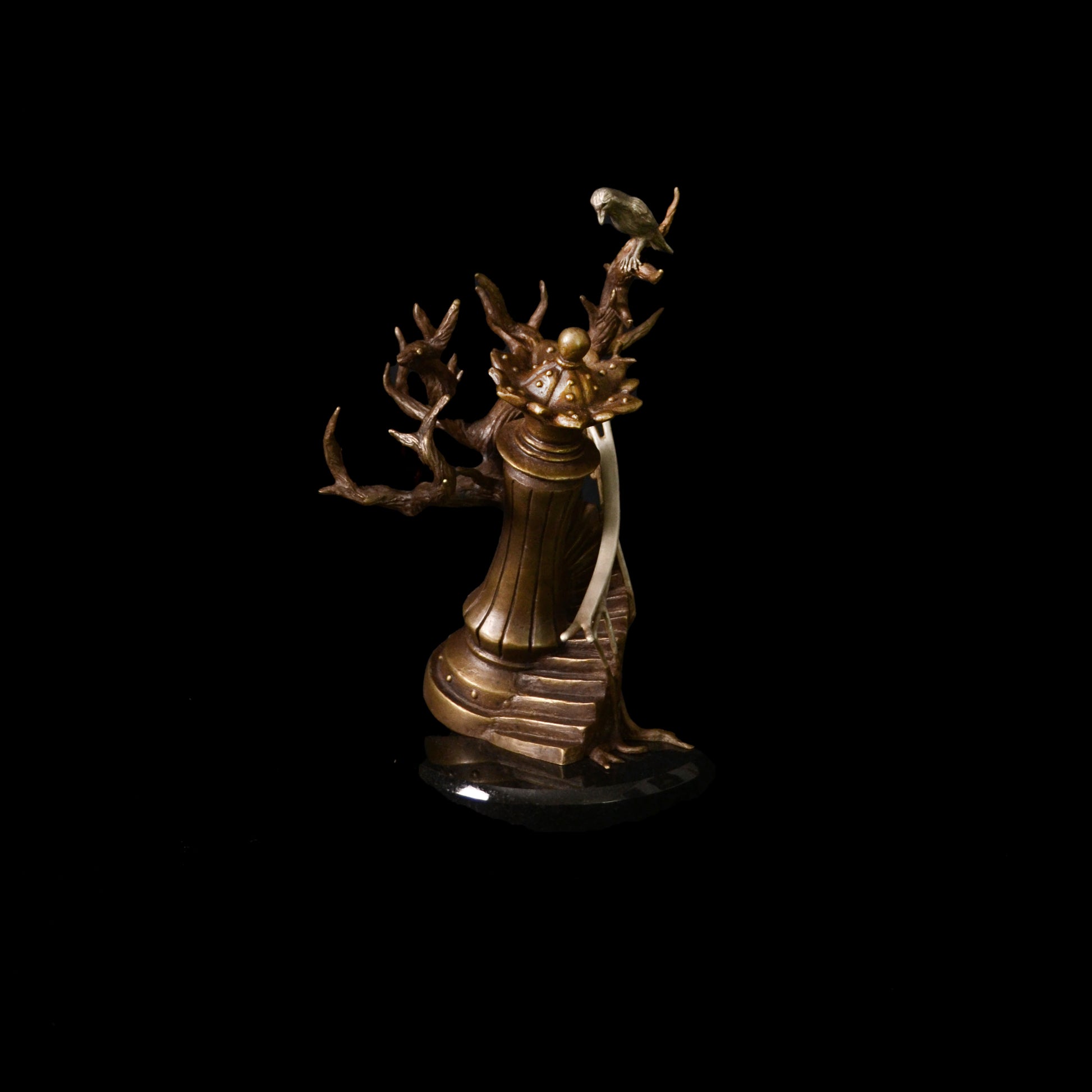 As far as the materials are concerned, this particular piece is made of bronze with a sterling silver hand railing and crow. The base is black granite. I really enjoyed playing with the different materials on this one and look forward to more of this in the future.