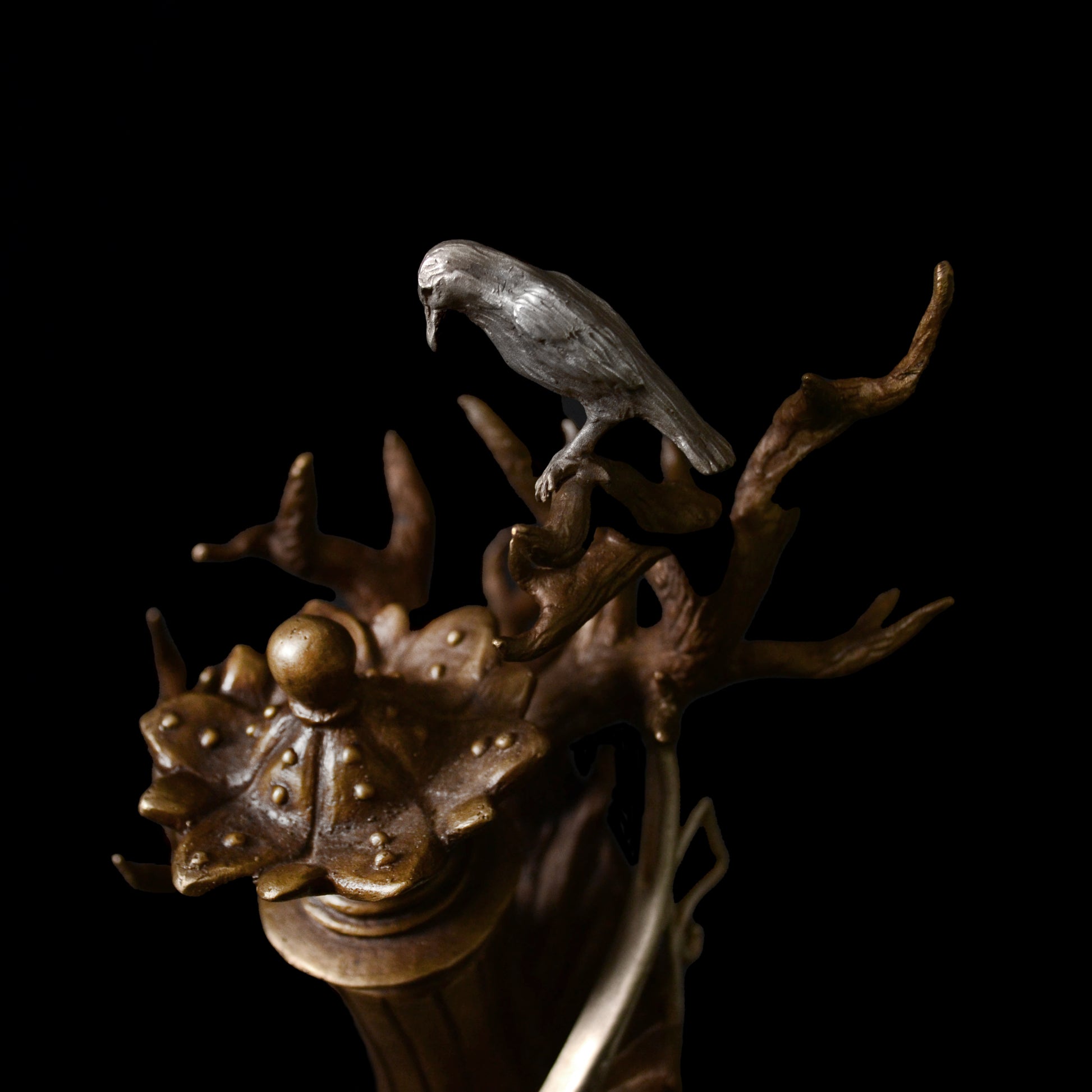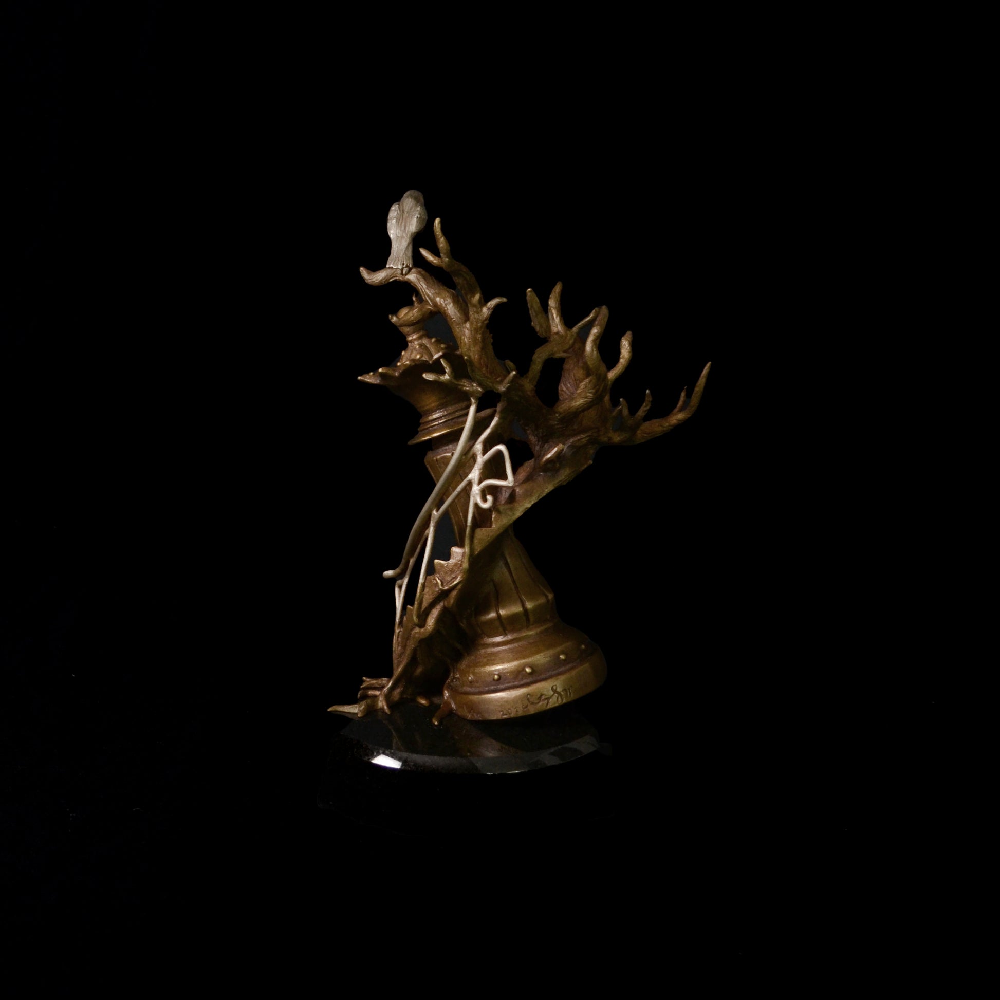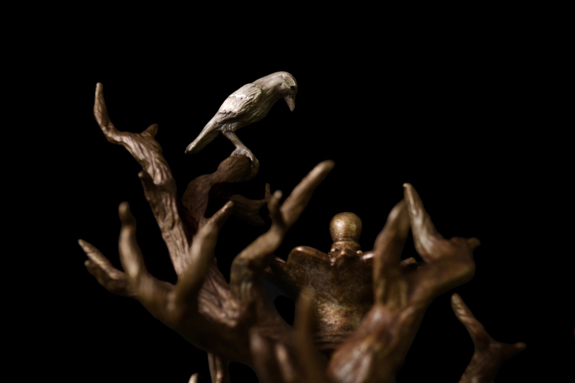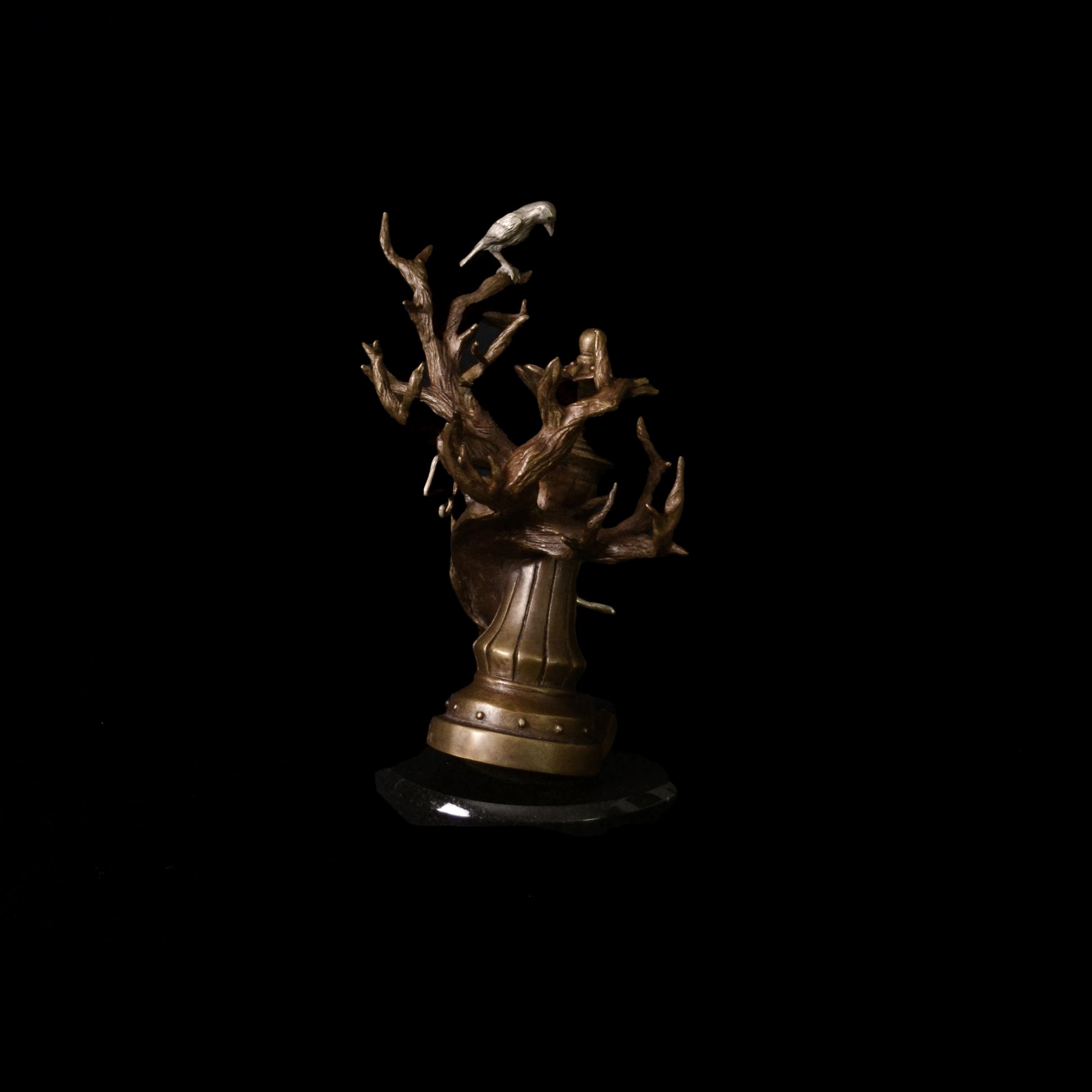 As far as the materials are concerned, this particular piece is made of bronze with a sterling silver hand railing and crow. The base is black granite. I really enjoyed playing with the different materials on this one and look forward to more of this in the future.