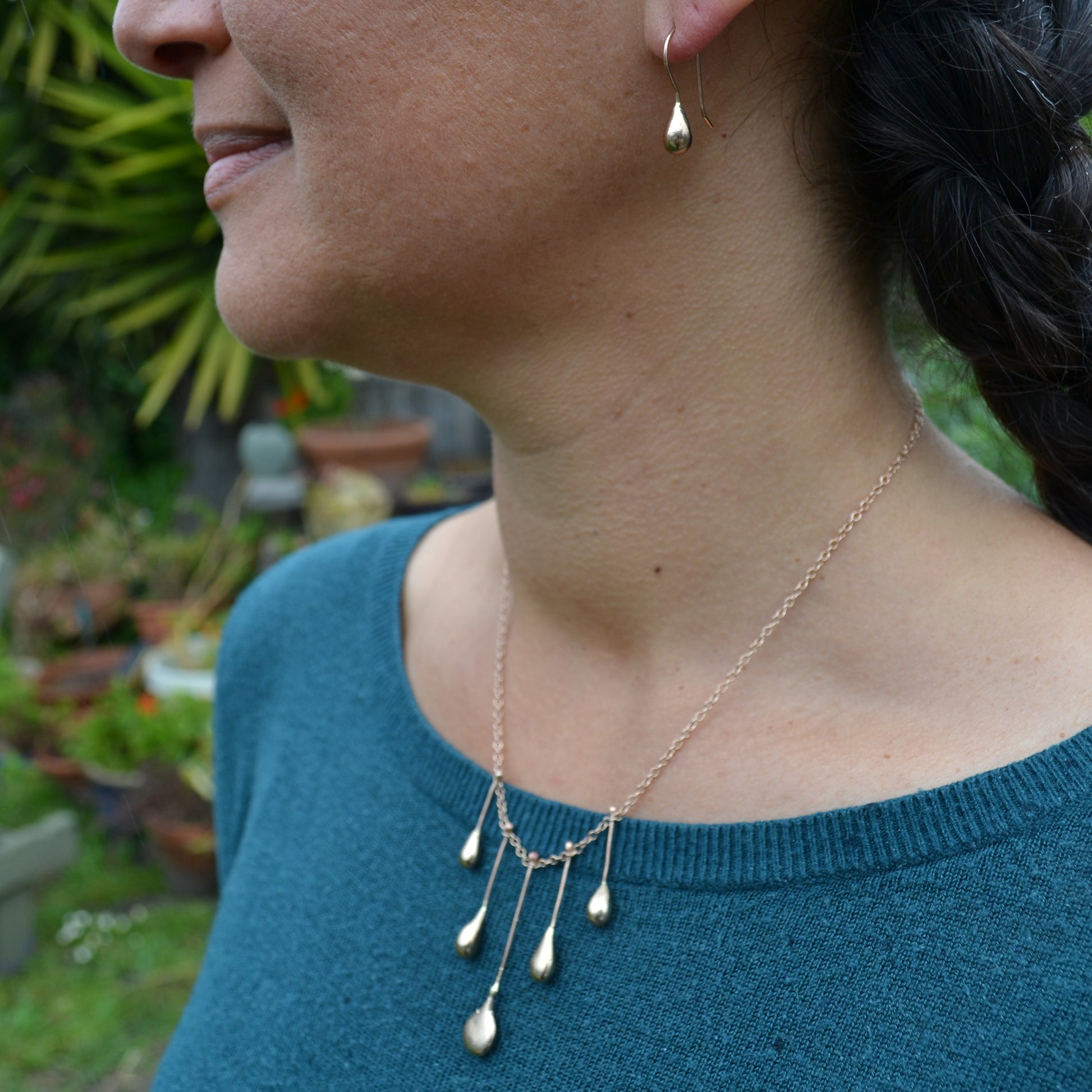 These drips are taken from extra metal drops that are left behind when I cast other pieces. A lesson in the beauty that can be found in things we consider to be waste.